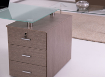 Il est composé d’un plateau en verre clair (1,60 x 0,75 m), reposant sur un bloc de rangement à 3 tiroirs offrant un espace de stockage pratique.