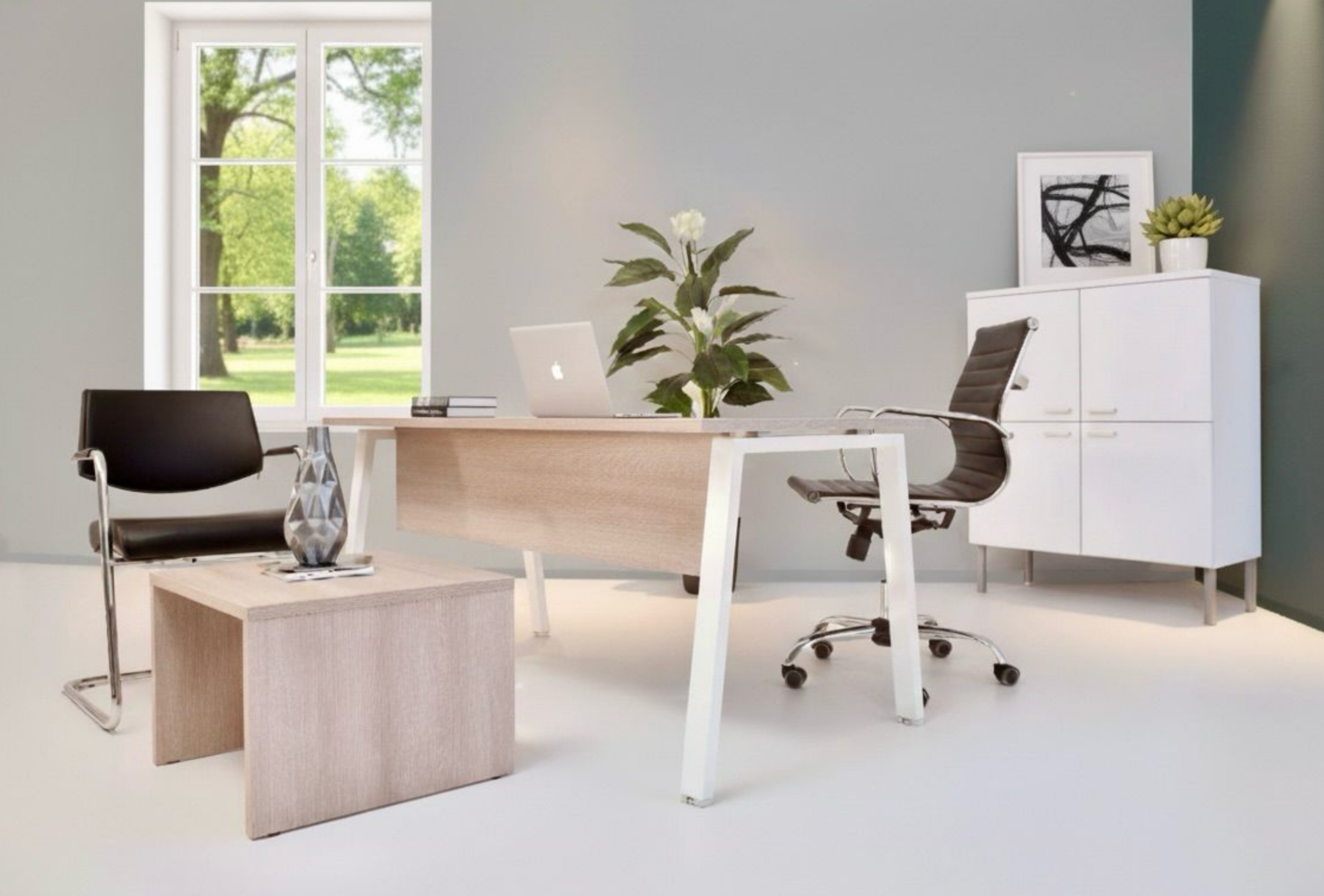 Fonctionnel et élégant, le bureau INCLINA est disponible avec ou sans retour pour s’adapter à tous vos espaces.