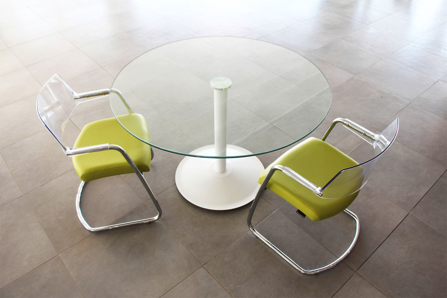 La table LUNA séduit par son design épuré et sa légèreté visuelle, idéale pour les espaces de réunion ou de discussion.